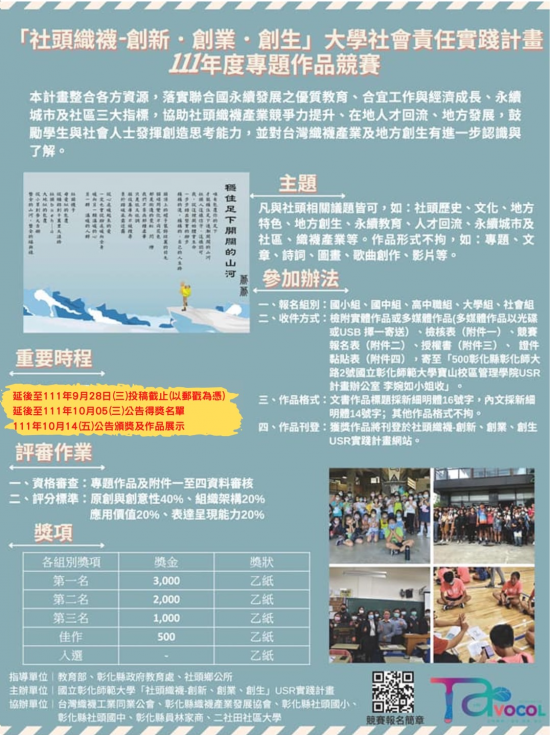 七、競賽承辦人:國立彰化師範大學「社頭織襪-創新、創