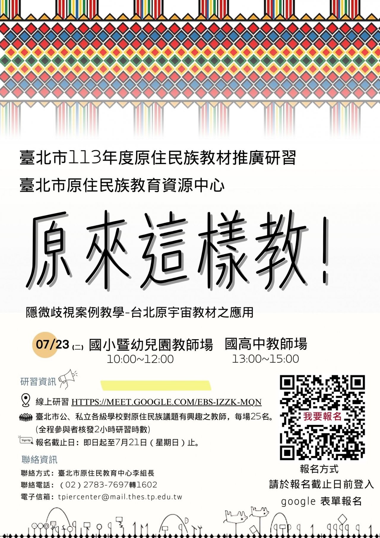 1 、國小暨幼兒園教師上午場: 113 年 7 月 23 日(星期二)上午 10 時至 12 時。
