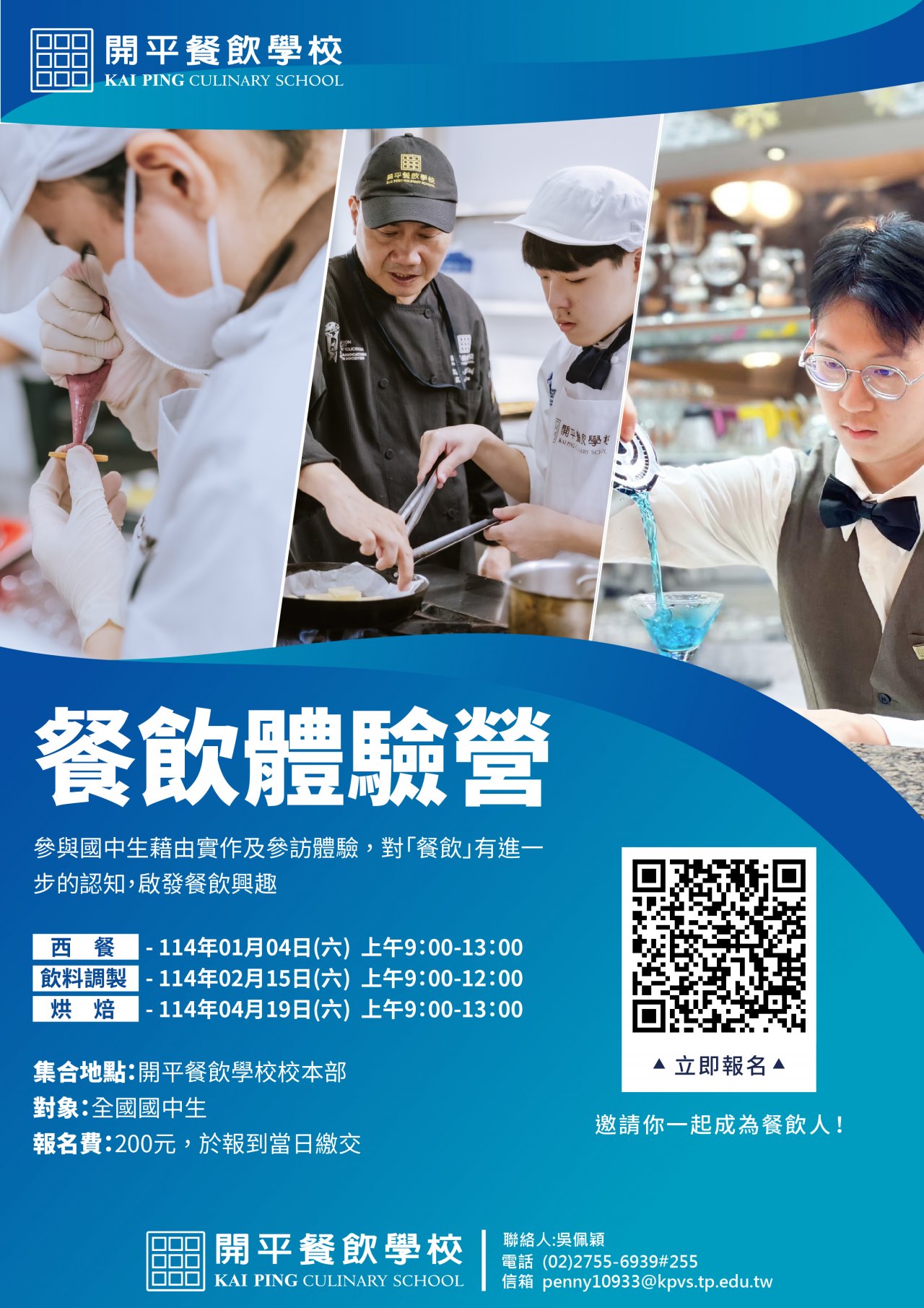 一、為協助國中生認識技職體系之學習內容、教學特色及進路發展,本次活動為透過餐飲實作體驗更加了解技職教育,以料理展現自我、創造未來無限可能。