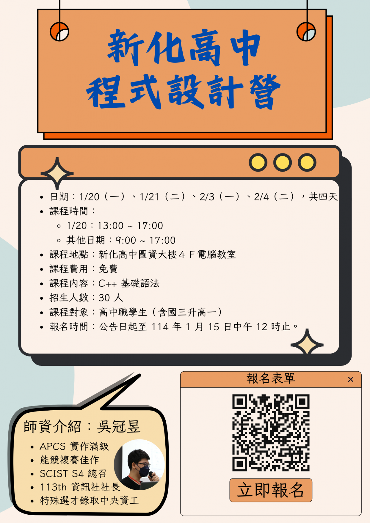 四、參加對象: 國高中對程式設計有興趣的學生,並以南二區學生為優先。