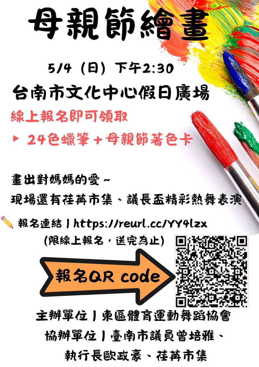 畫出對媽媽的愛~ 現場還有荏苒市集、議長盃精彩熱舞表演,陪孩子畫畫、逛市集,開心過母親節!