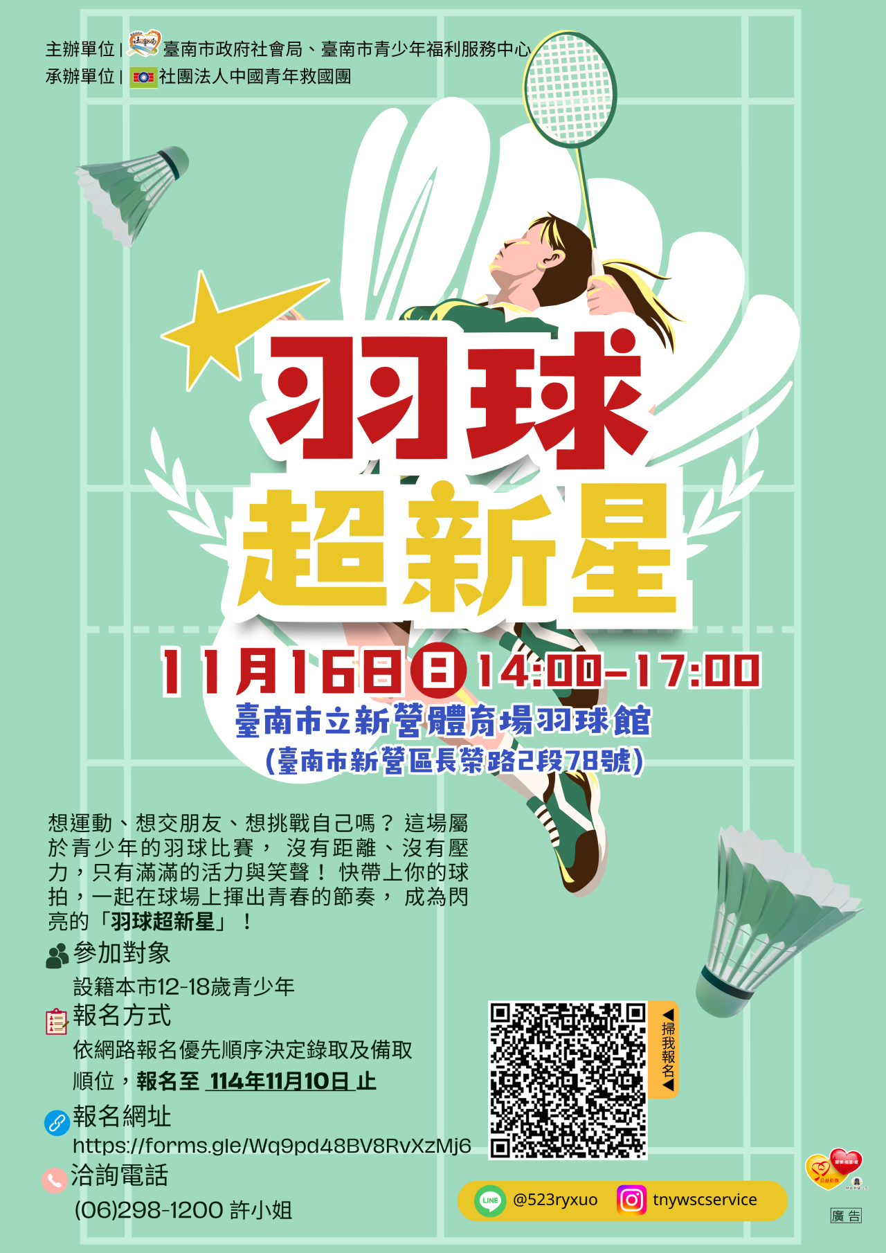 轉知本市青少年福利服務中心「羽球超新星」育樂活動計畫