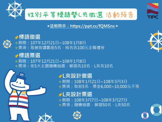 轉知臺灣港務股份有限公司辦理性別平等標語暨L夾設計徵選活動