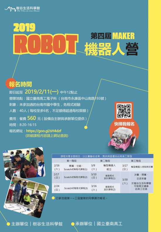 樹谷生活科學館與國立臺南高工合辦 機器人 科技 營鼓勵自由參加