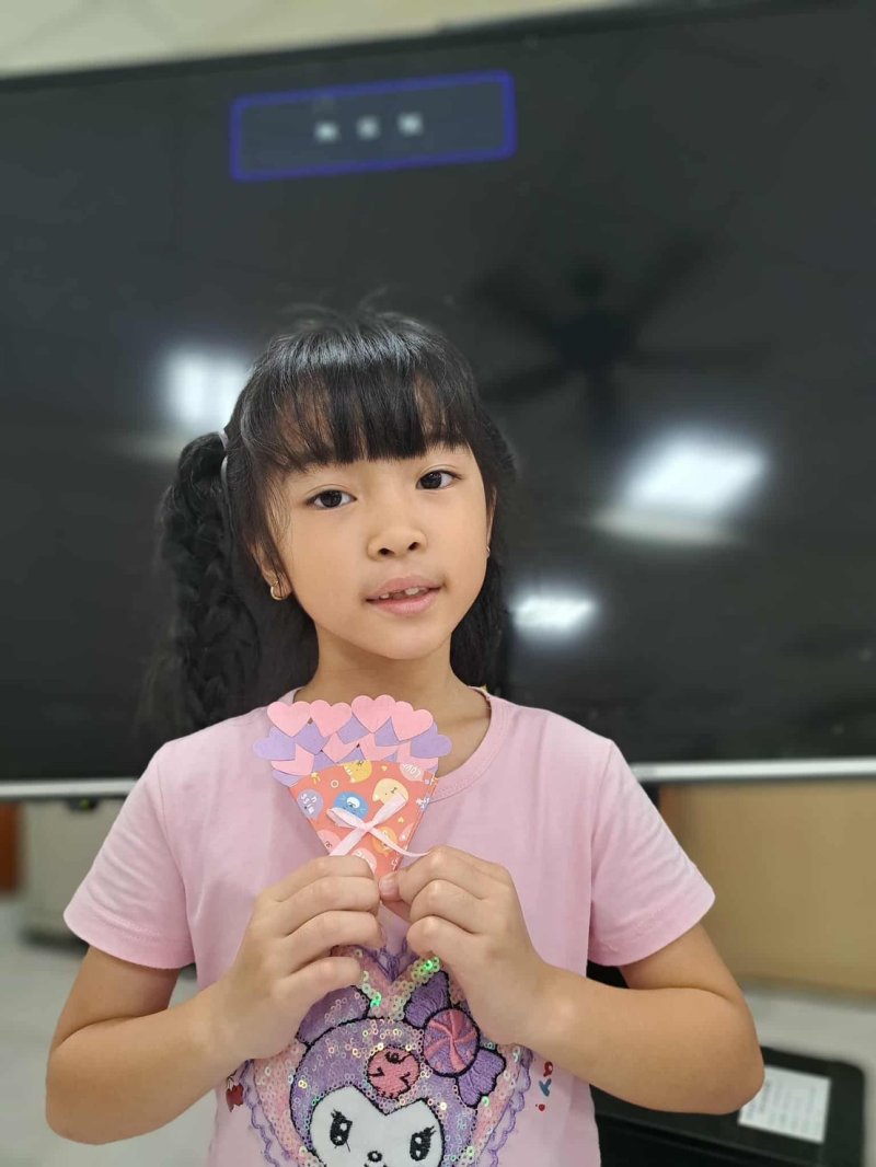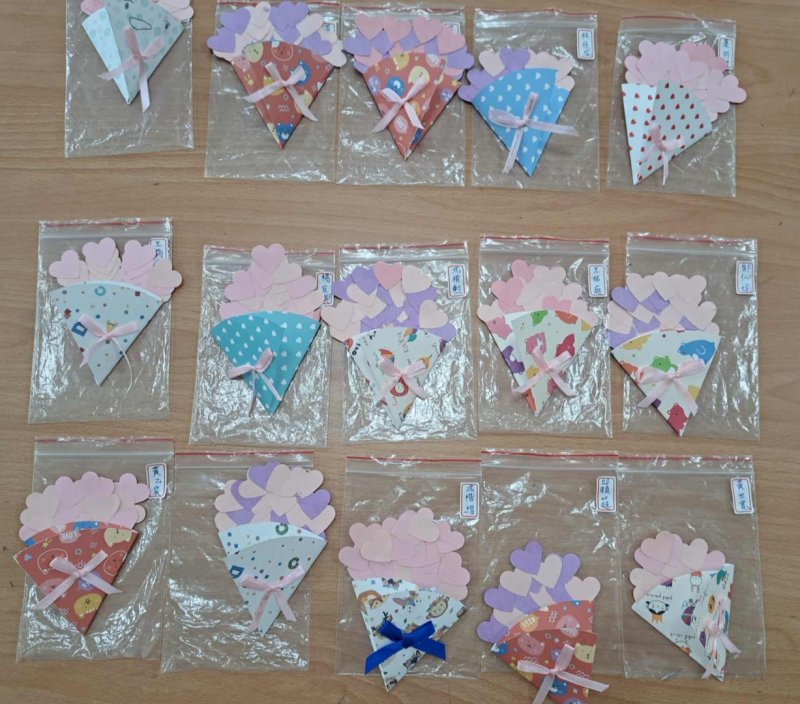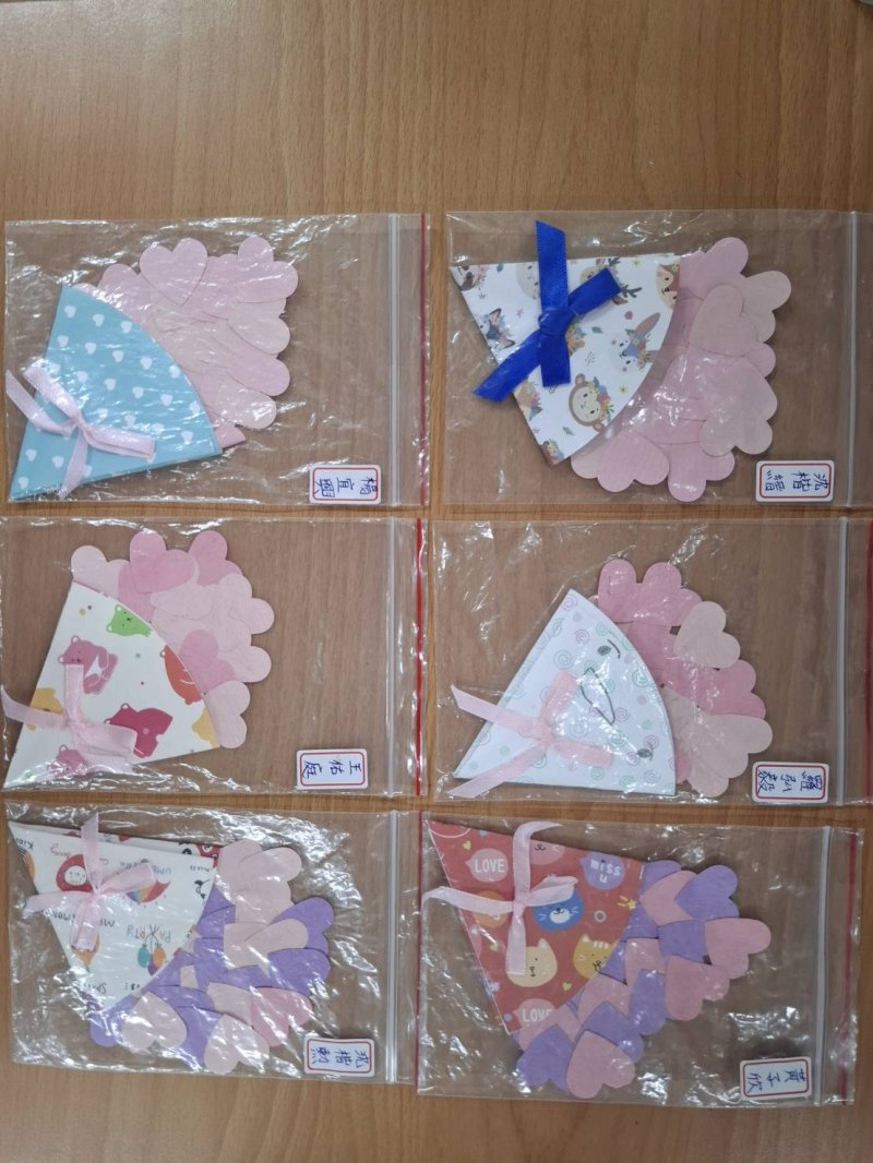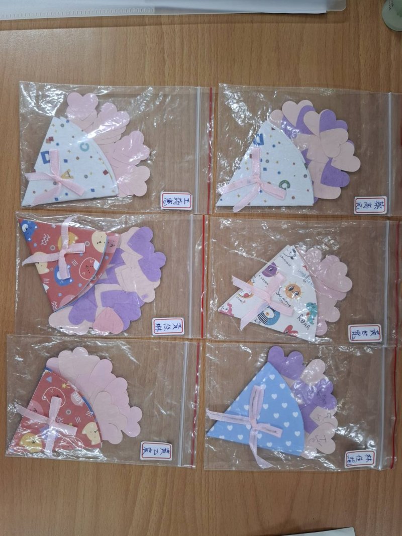 本校課後照顧班結合節慶文化與創意手作,每週一、週四均安排富有趣味的手作課程。九月份特別融入教師節感恩主題,讓孩子在溫馨的氛圍中思考「感謝與表達」的重要性。課程中運用色紙、紙卡等素材,設計製作「教師節愛心花束卡片」,孩子們在細心摺疊、組合與書寫祝福的過程中,不僅培養美感與創作力,也學會將感謝之情透過作品真誠傳達給老師。