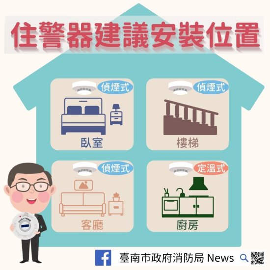 「裝設住宅用火災警報器,守護您的居家安全」
