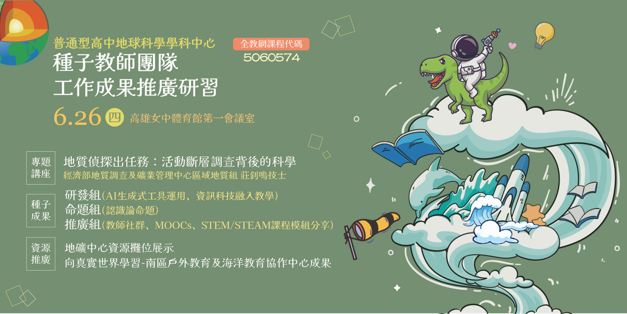 (五)惠請貴校鼓勵地球科學科教師參加,並同意報名教師辦理公差假並協助課務排代及調課。