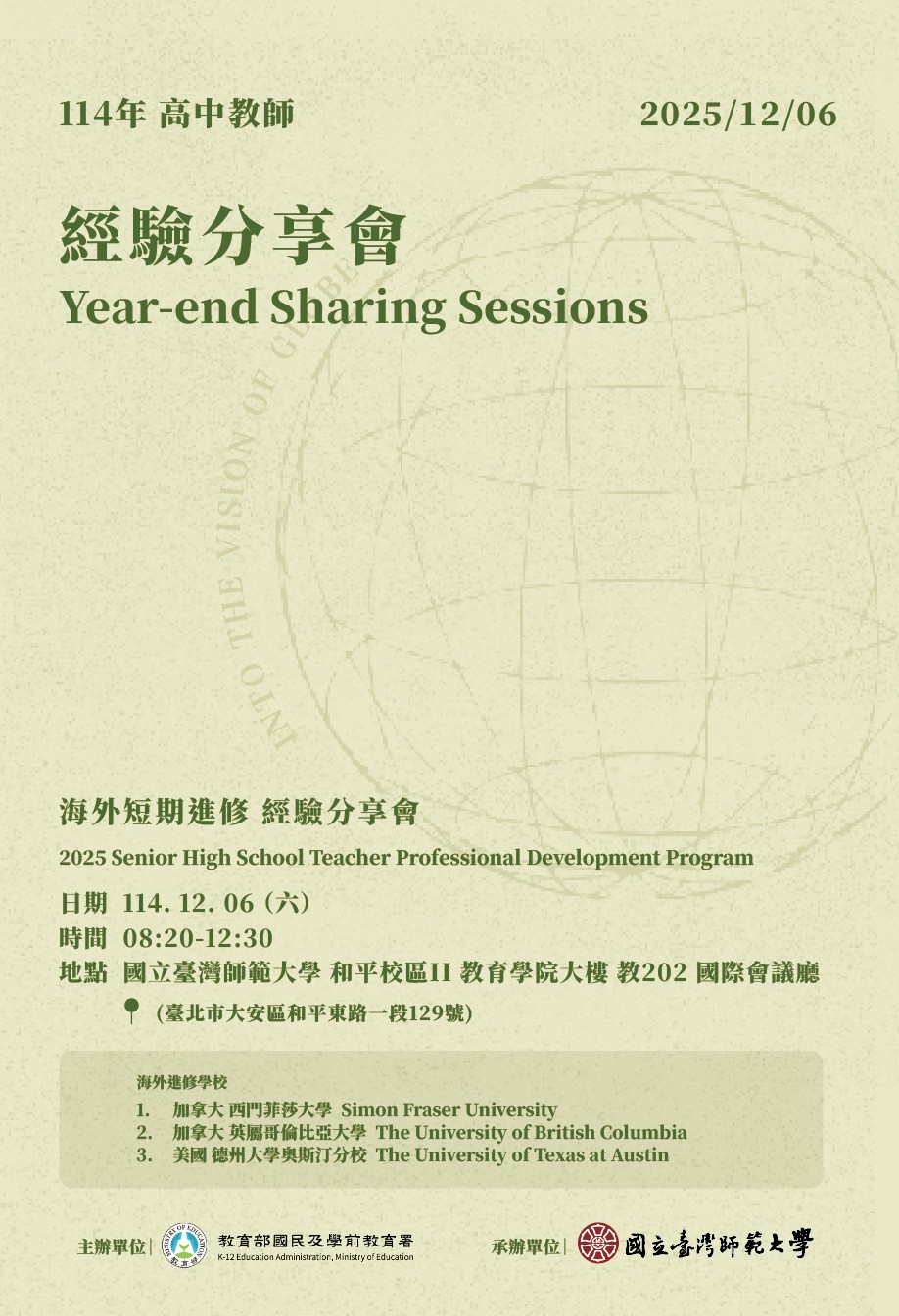 三、旨案係由參與「114 年高中教師海外短期進修」之教師,分享其海外進修心得及返國後於課堂教學應用進修所學,有效提升國際新知及教學知能。