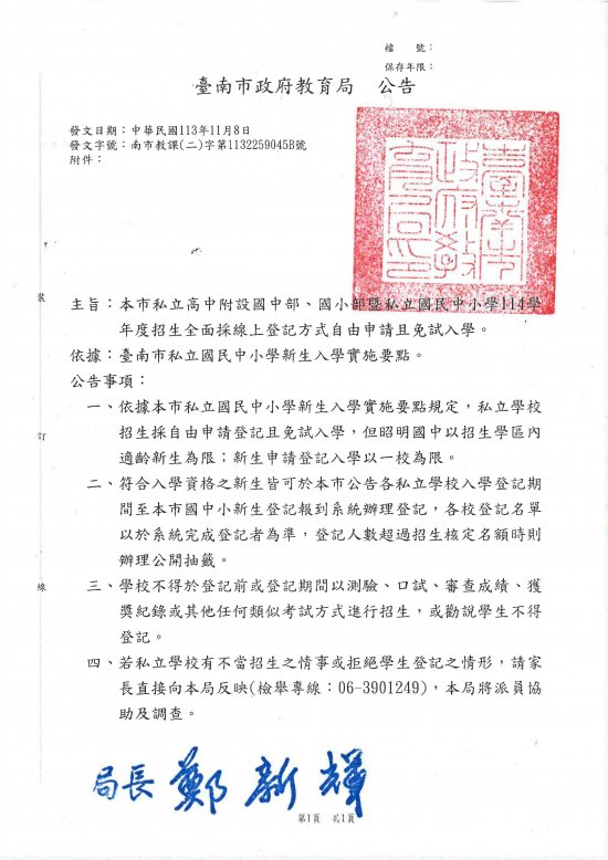 【重要】臺南市114學年度國中小招生全面採線上登記方式自由申請且免試入學!!!