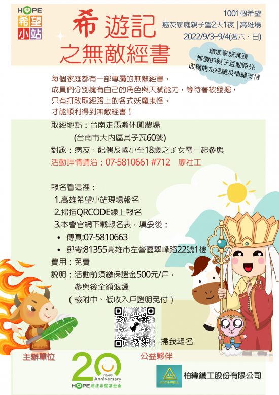 五、本活動報名時間自即日起至 2022 年 8 月 12 日止,並視疫情狀況保留調整日期之彈性。如有未盡事宜,請電洽該會活動負責人 07-5810661 分機 712 廖社工。