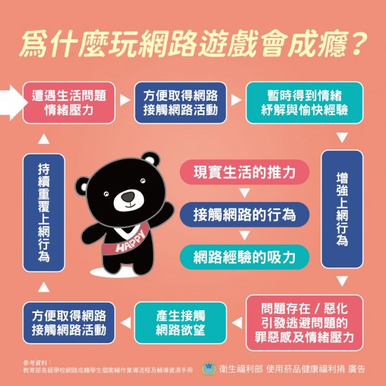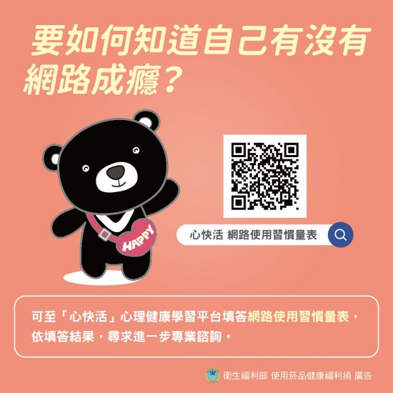 一、每學期最後一周為網路成癮防治宣導週,請觀賞衛服部製作的宣導影片及防治圖卡