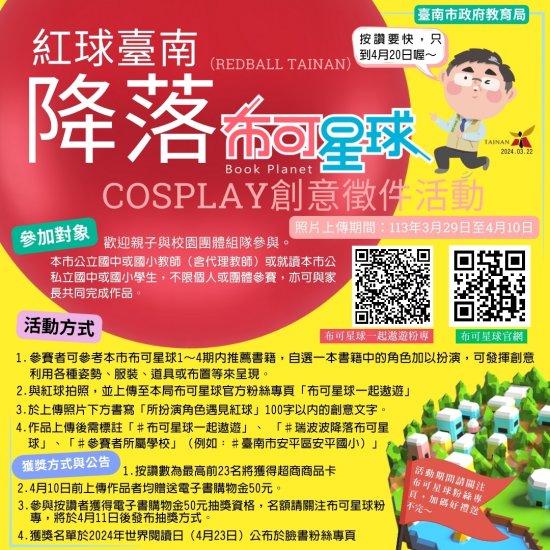 轉知:「紅球臺南( RedBall Tainan )降落布可星球 Cosplay 創意徵件活動」