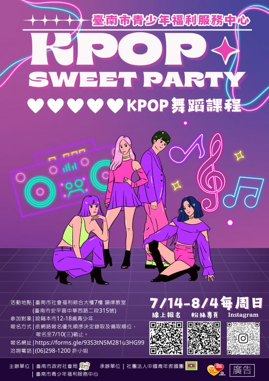 轉知-青少年福利服務中心「營火故事」多元適性發展方案及「K-pop Sweet Party」育樂活動計畫及DM各1份