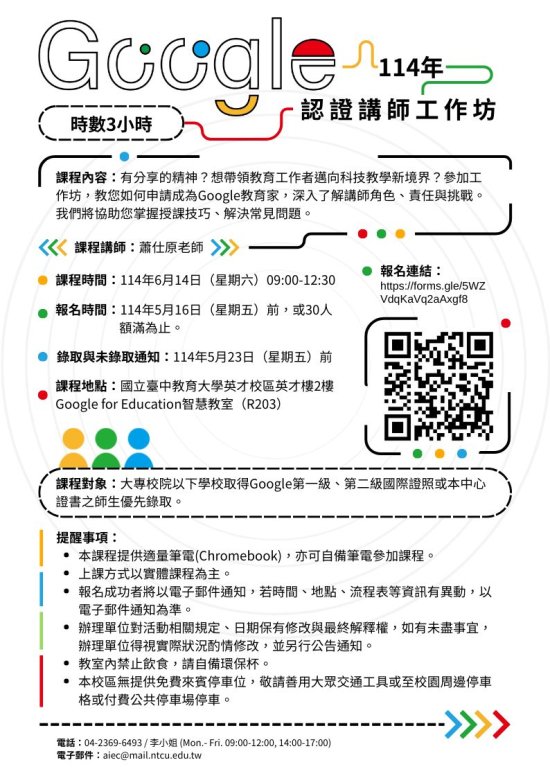 (一)課程主題: 114 年 Google 認證講師工作坊。
