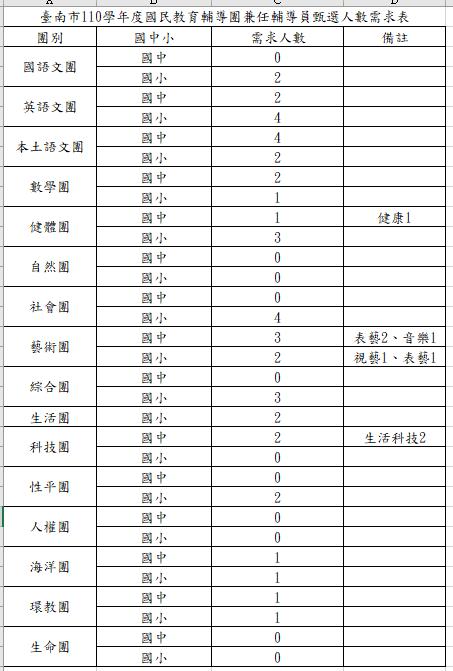 四、檢附「臺南市 110 學年度國民教育輔導團-兼任輔導員甄選簡章」1 份。