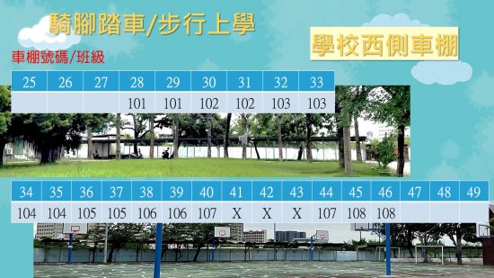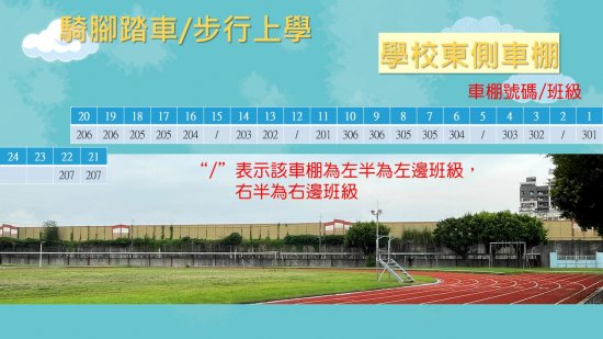 返校日當日請同學將腳踏車停放在新的車棚,車棚位置如附件。