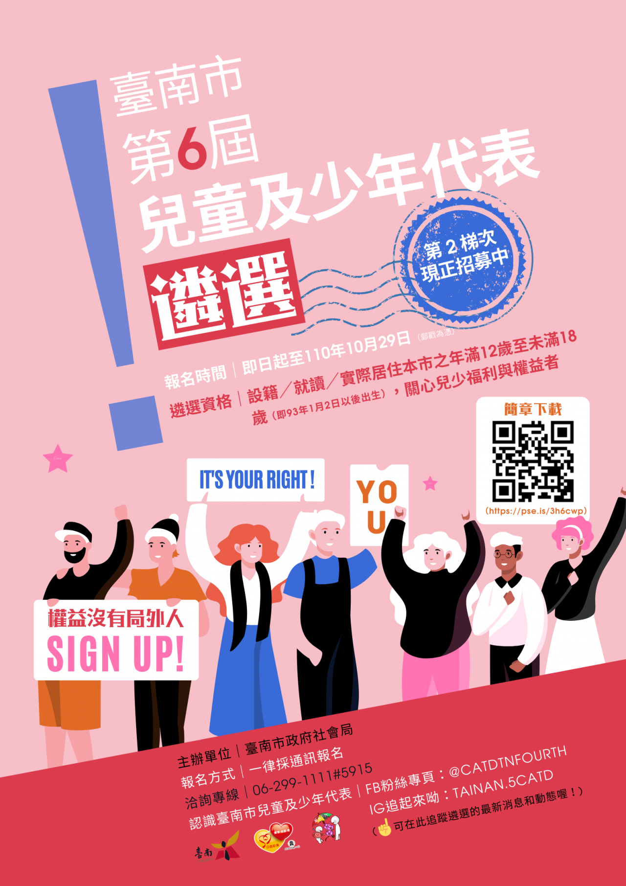 一、為涵育本市兒少具社會責任、公民意識,對公共議題有思 辨力,並落實《兒童權利公約》之兒少被傾聽及意見獲得 考量的權利(§12 )本府辦理兒童及少年(簡稱兒少)代表 遴選已邁入第 6 屆,期能永續發展具行動力少年公民。