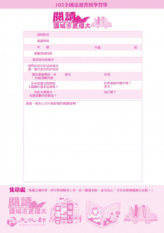 二、檢附「105 全國巡迴書展」宣傳單及學習單(附件)各 1 份。