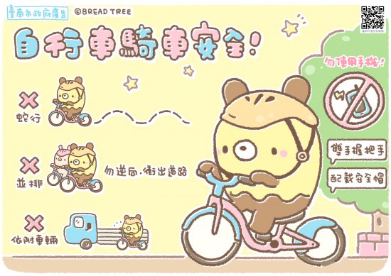 交通安全宣導:「戴好安全帽,騎車不併排或逆向、不使用手機。臺南市政府關心您。」