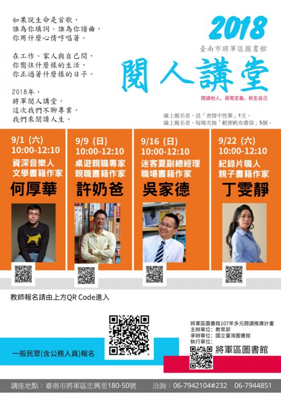 一、本區圖書館有關閱人講堂的介紹。(https://goo.gl/EahpdH)