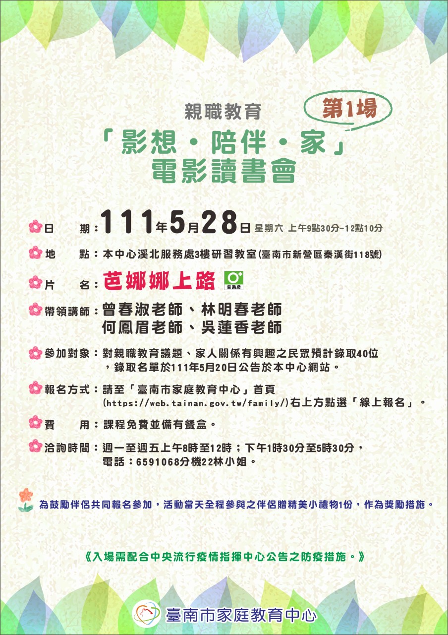 一、 111 年度親職教育-「影想˙陪伴˙家」-電影讀書會,即日起受理報名,課程免費,名額有限,歡迎對親職議題、家人關係有興趣之民眾踴躍報名參加。(two hearts)