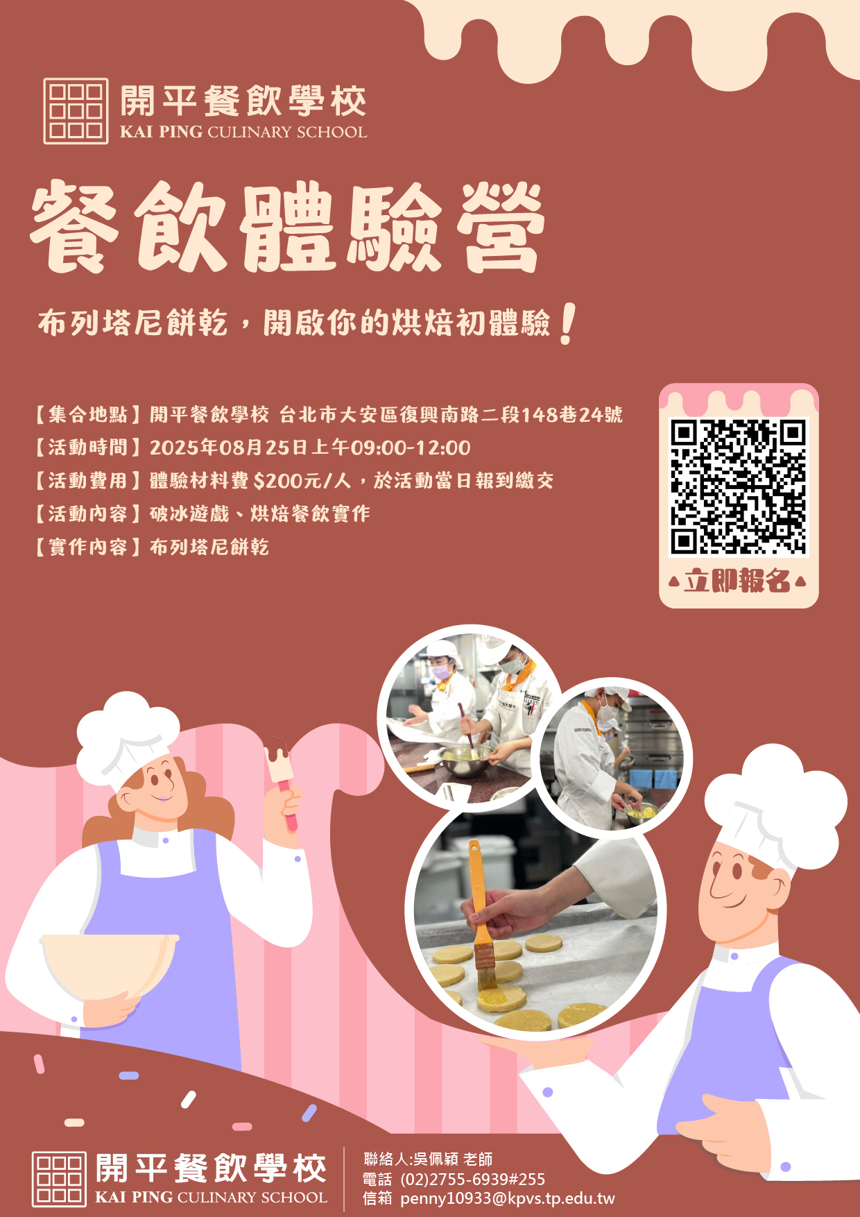 一、為協助國中生認識技職體系之學習內容、教學特色及進路 發展,本次活動為透過餐飲實作體驗更加了解技職教育, 以料理展現自我、創造未來無限可能。