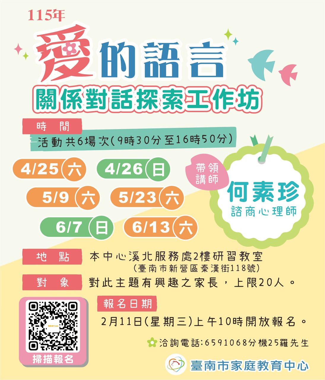 ☎️「412-8185 全國家庭教育諮詢專線」115 年 2 月 14 日(星期六)至 2 月 22 日(星期日)農曆春節假期暫停服務。