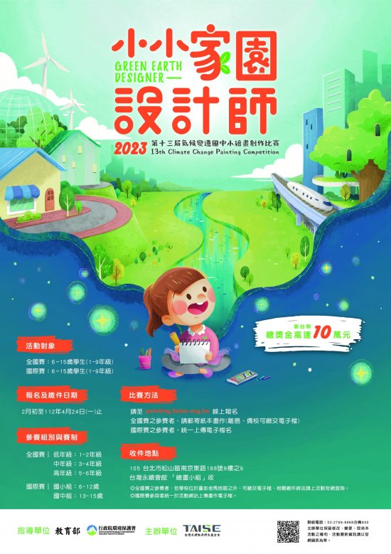 主題:本年度活動呼應聯合國永續發展目標(SDGs)的第 11 項,以「小小家園設計師」為主題,提升國中小師生關注天然災害對城市造成的損傷,思考如何降低城市垃圾和空氣汙染,同時重視社區文化與自然遺產等。也藉由小朋友的畫筆,喚醒社會大眾對上述議題的重視。