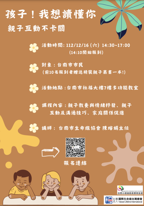 (四)課程內容:親子教養與情緒抒發、親子互動及溝通技巧、家庭關係促進。