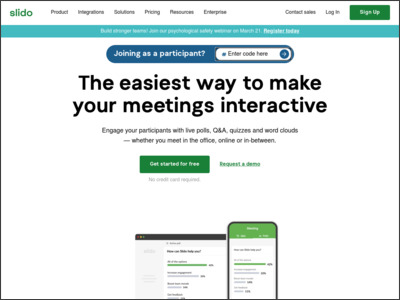 Slido is the ultimate Q&A and polling platform for live and virtual meetings and events. It offers interactive Q&A, live polls and insights about your audience.