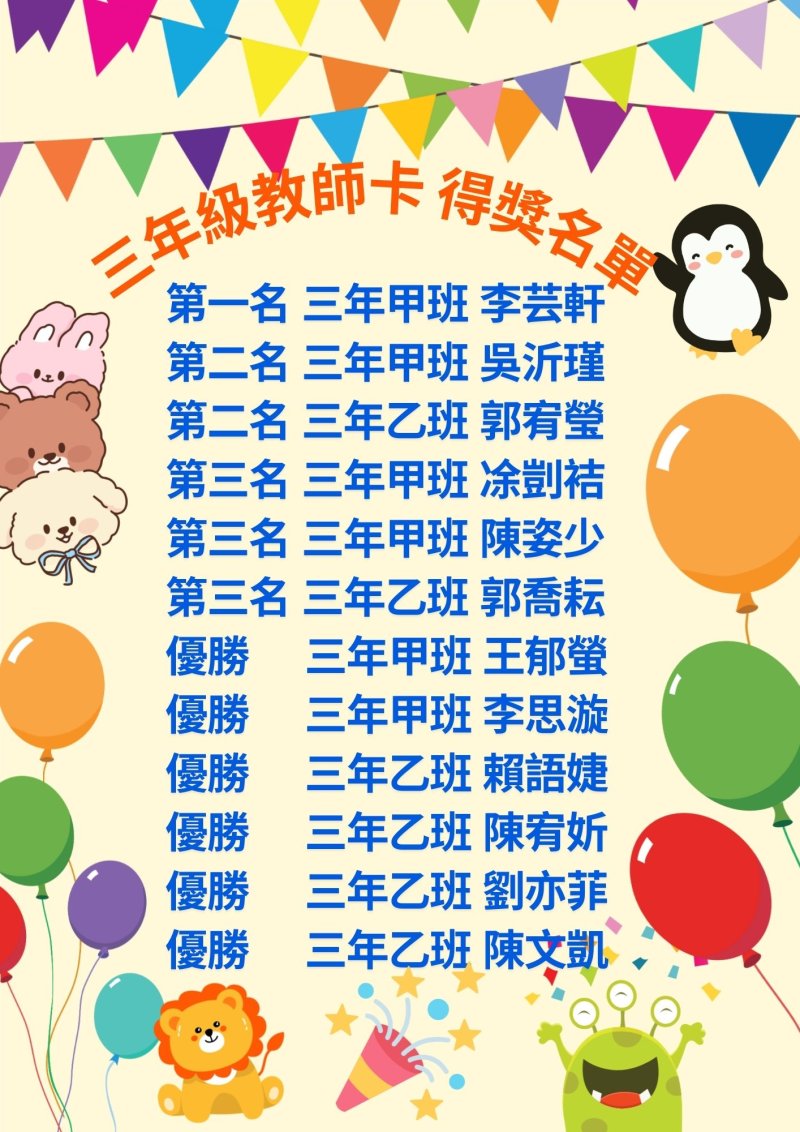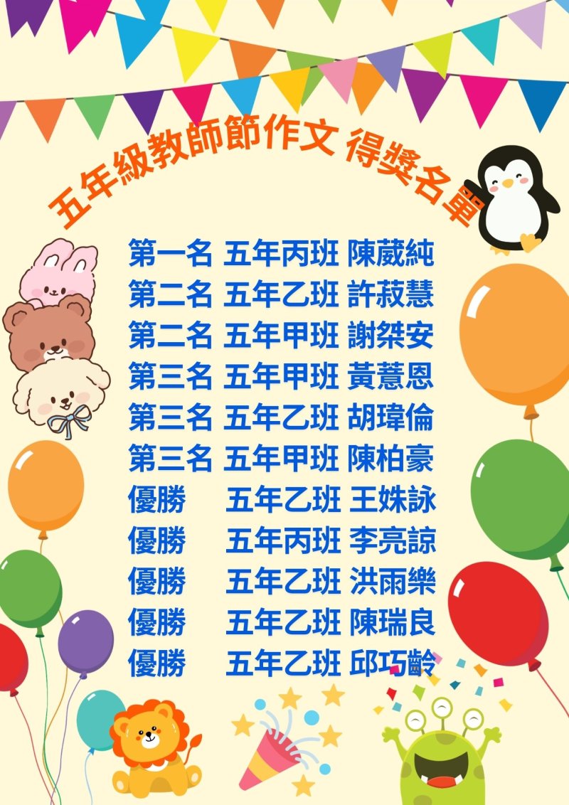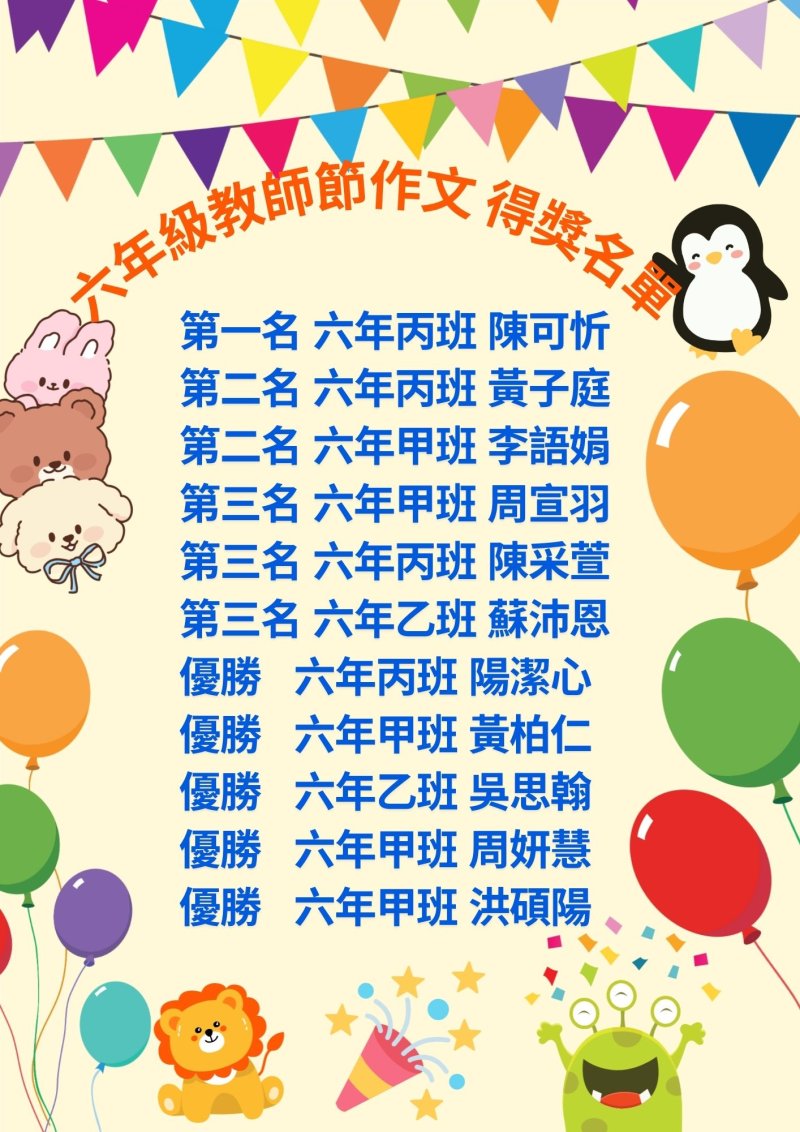 | 2025-09-29 狂賀 114學年度教師節學藝競賽, 得獎名單 |