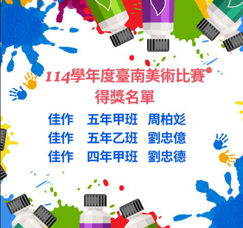 | 2025-10-29 狂賀 恭喜本校學生參加114學年度臺南美術比賽榮獲佳績 |