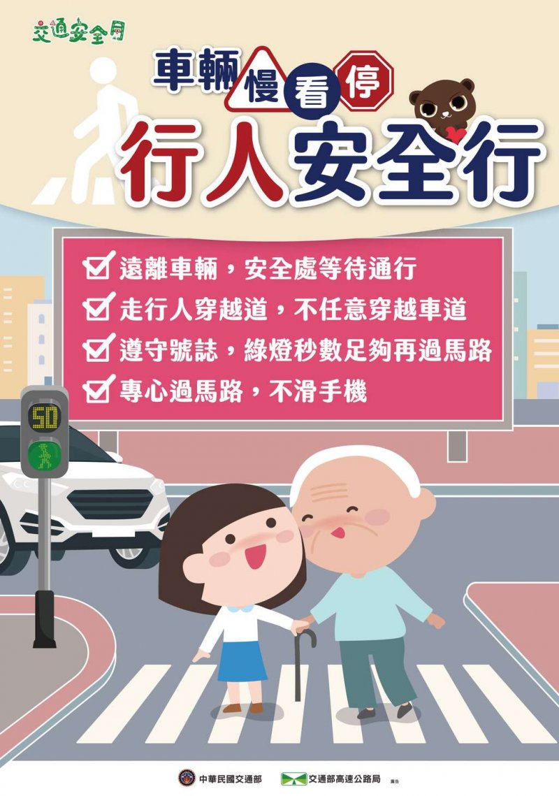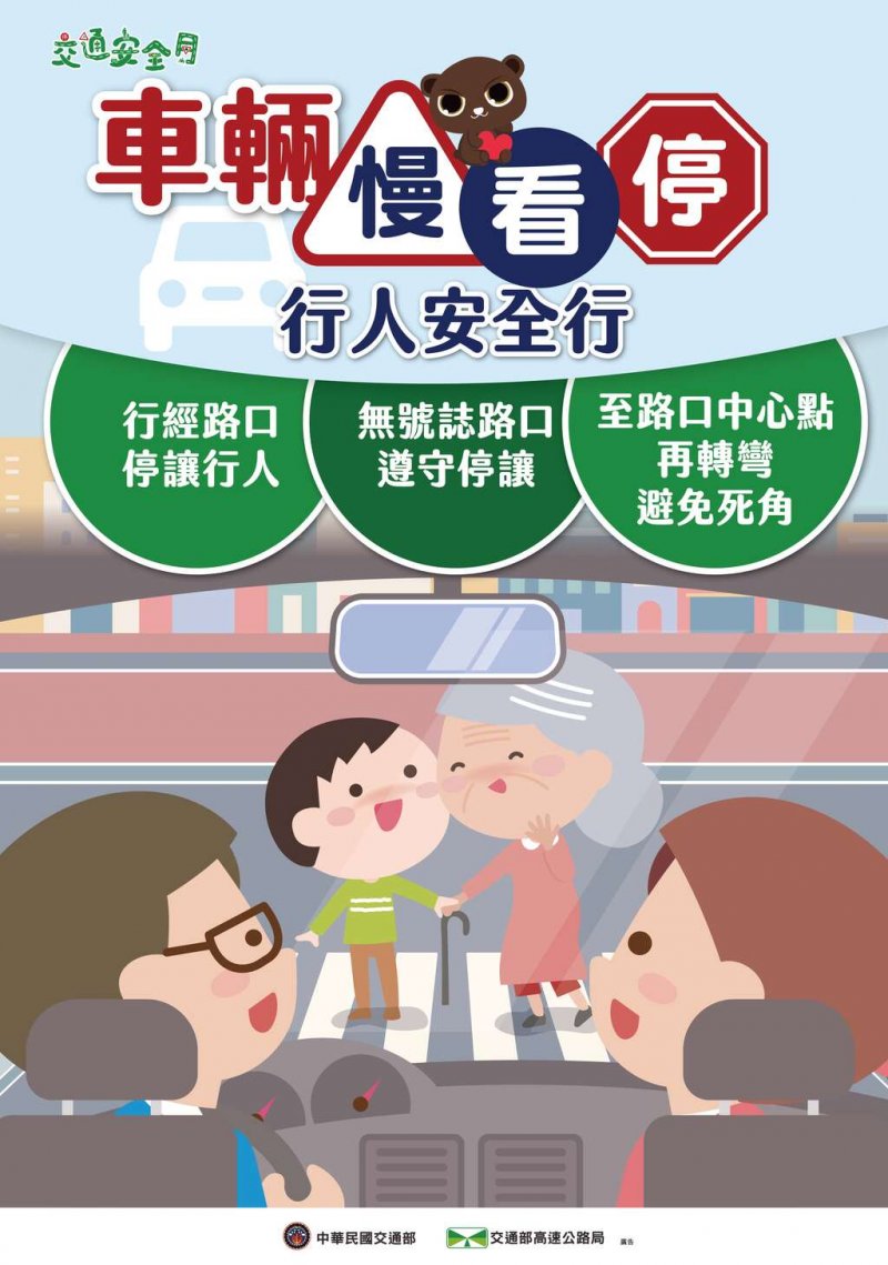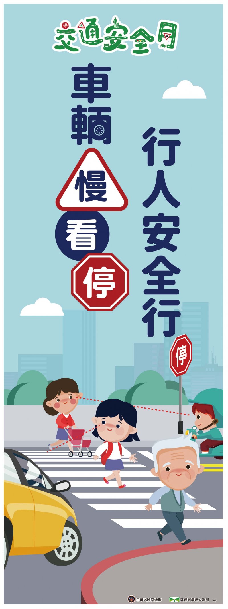 一、為強化國人道路交通安全觀念,期透過「交通安全月」特定期間之強化宣導,喚起國人交通安全意識;今(112)年主題為「車輛慢看停,行人安全行」。