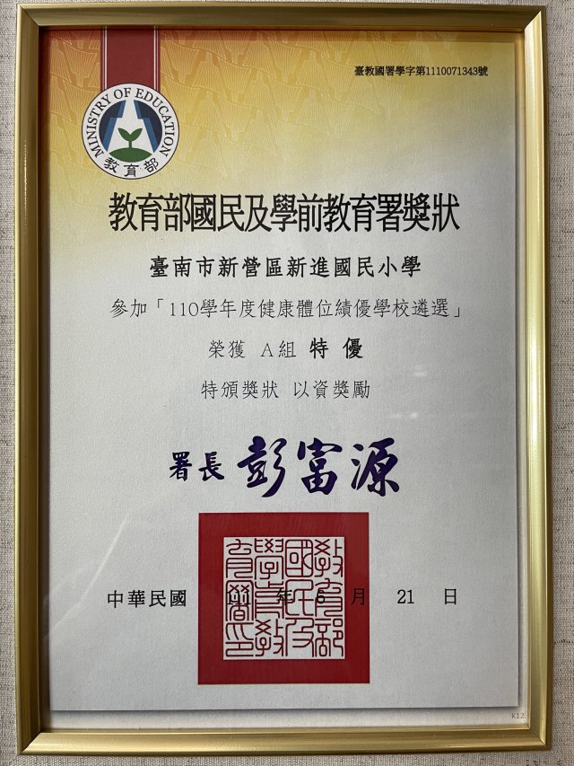 教育部國民及學前教育署110 學年度健康體位績優學校「特優」