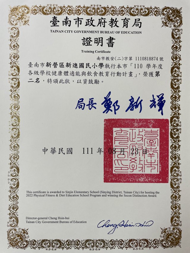 110學年度臺南市健康體適能暨健康飲食行動計畫C組第二名