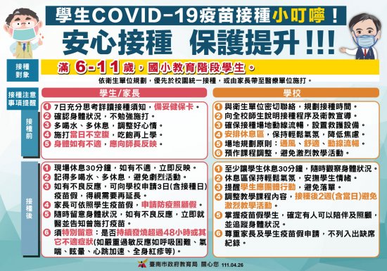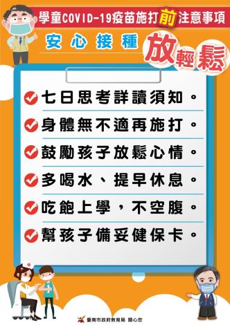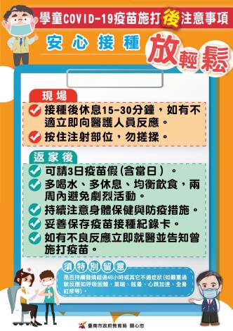 提醒學童接種疫苗前後注意事項,