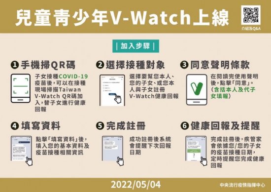 兒童青少年 V-watch 上線,家長可於學童施打後依意願加入回報,