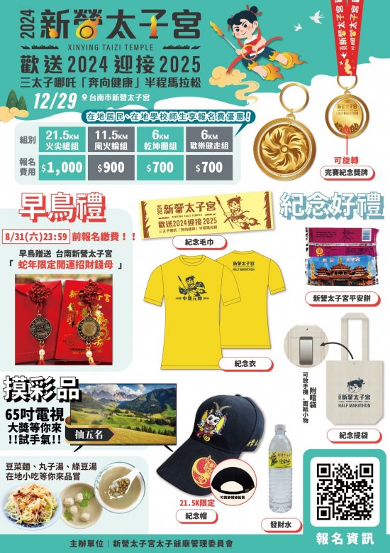 二、、時間地點: 113 年 12 月 29 日(日)上午 6:30 ,於新營市太子宮太子爺廟(台南市新營區太北里 45-2 號)起跑。(5:30 開放寄物報到)