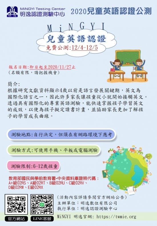 八、關於活動詳細辦法與注意事項,請參閱「MiNGYI-明逸認證 測驗中心」( 網址: http://twmie.org )。
