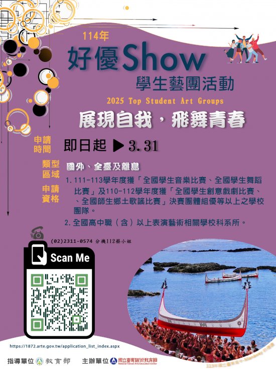 一、依據國立臺灣藝術教育館 113 年 12 月 11 日藝演字第 1130003894 號函辦理。