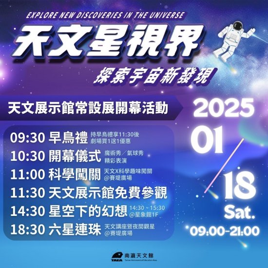 天文展示館開幕活動「天文星視界-探索宇宙新發現」系列精彩活動讓您從早玩到晚,無須報名免費參加!