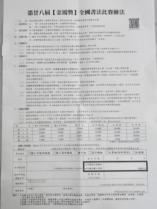 金鴻獎全國書法比賽