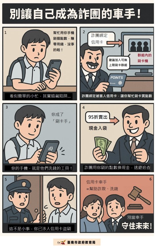 依據教育部 114 年 7 月 17 日臺教授國字第 1140067268 號函辦理,暑假期間學校辦理各項活動將加強宣導以上議題。敬請家長與同學留意,並參考附檔 6 張宣導圖卡,共同維護青少年暑假安全。