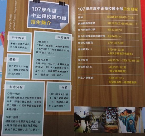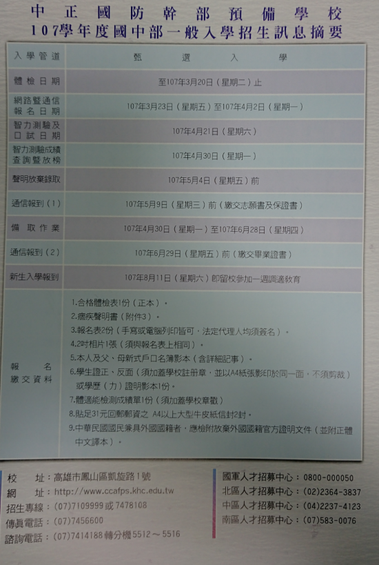 轉知國防部中正預校國中部招生訊息
