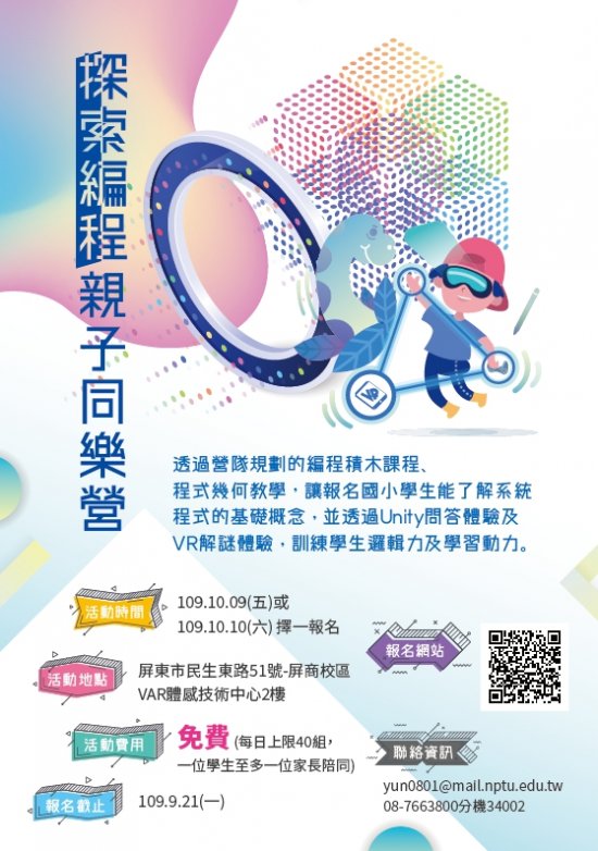 轉知屏東大學資訊學院辦理「探索編程親子同樂營」活動訊息