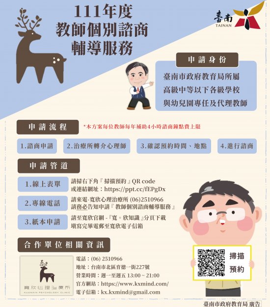 一、依據「臺南市市立高級中等以下學校及幼兒園教師諮商輔導支持體系設立辦法」辦理。