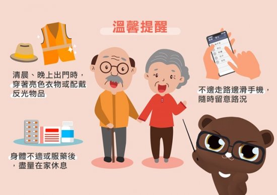 三、另本市高齡者佔 A1 事件平均 1 年約占 5 成, 10 月份更高達 7 成 3 ,請各校透過建立學子正確觀念,回家提醒家中長輩交通安全注意事項,參考做法如下: