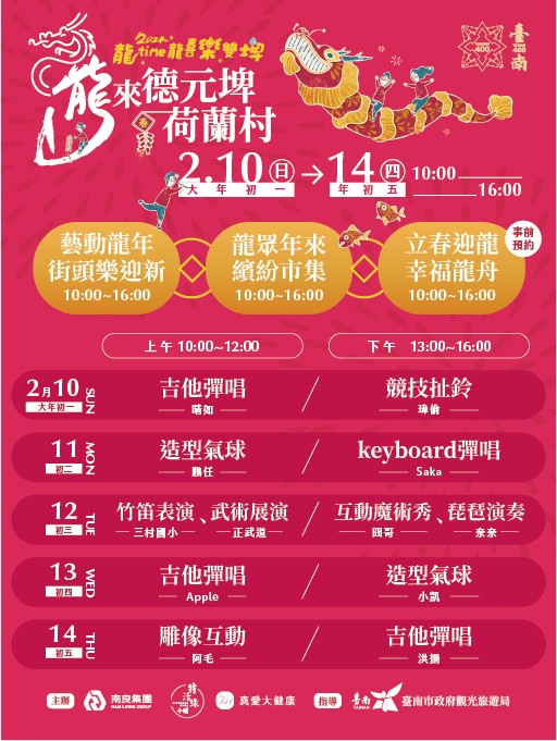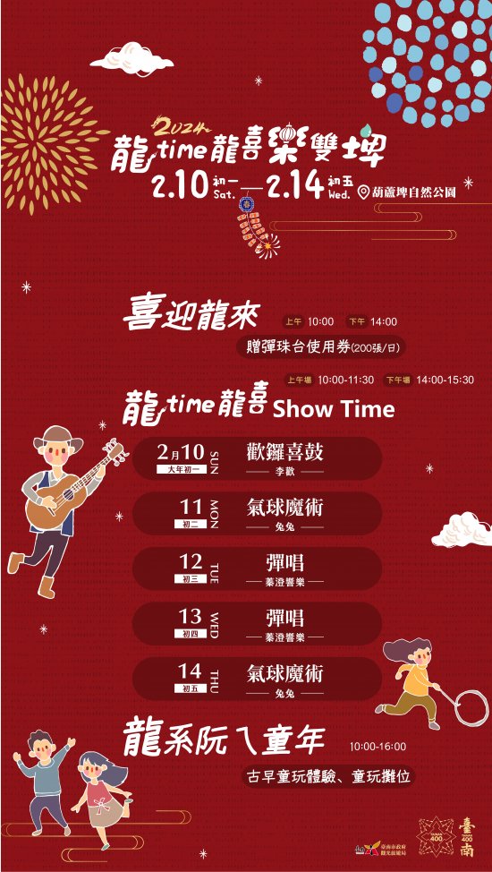 臺南市政府觀光旅遊局辦理「2024 龍 time 龍喜樂雙埤」春節活動。