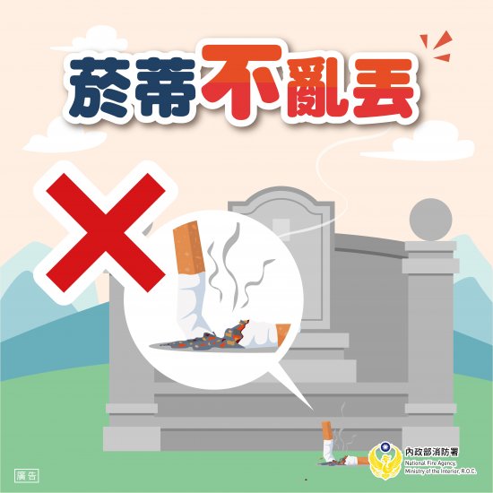 一、清明節將至,為防範墓地火災,請提醒師生及家長於掃墓祭祖時要注意「4 不 1 要」原則-除草「不」用火、菸蒂「不」亂丟、紙錢「不」燃燒、爆竹「不」燃放、垃圾「要」帶走,以防範墓地火災發生並維護環境衛生,一旦發現火災情事,立即撥打 119 報案或通知附近消防警戒人員處理。