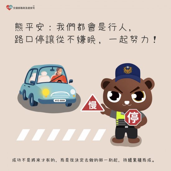 二、本次宣導主題:「我們都會是行人,將心比心,路口停讓從不嫌晚!」